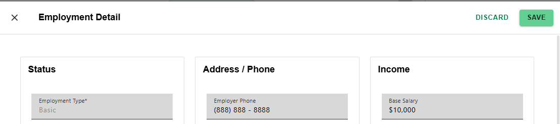 - Click 'ADD NEW' to enter new Employment/Non-Employment and Income details. Once done, click 'SAVE' to apply changes or 'DISCARD' to cancel.