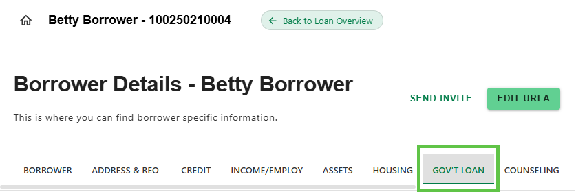- On the Borrower Details screen, click on the 'GOV'T Loan' Tab.