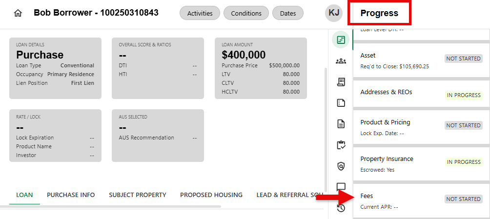 - Navigate to and select the Fees Progress Item