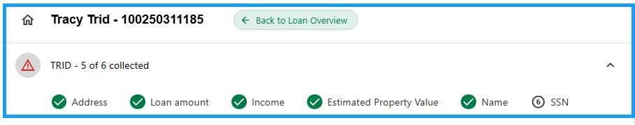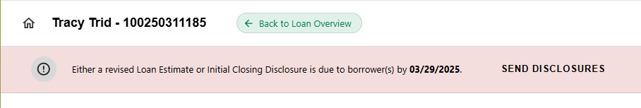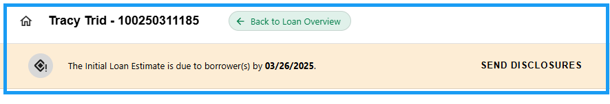 - The TRID tracking banner displays an alert to help draw attention to when TRID is going to trip. Once tripped, the banner is replaced by a banner indicating when the initial Loan Estimate is due.