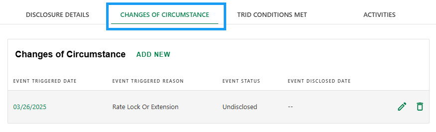 - The 'DISCLOSURE DETAILS' tab contains relevant dates for conditions met, closing date and disclosure delivery dates for tracking purposes.