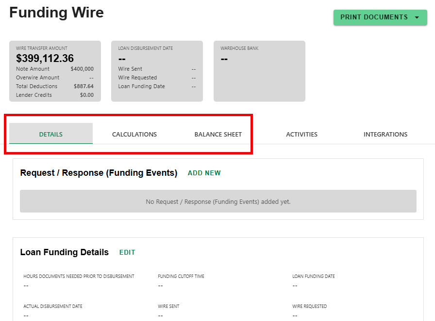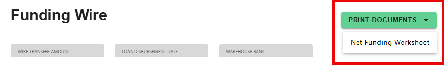 - Once funding details are complete, click the 'PRINT DOCUMENTS' button to generate the 'Net Funding Worksheet.'