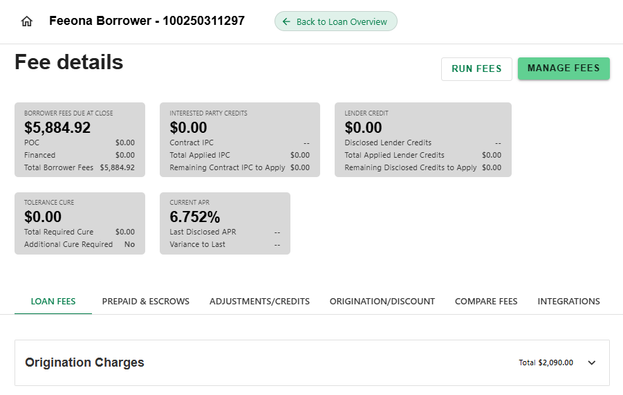 - View and Manage Individual Fees, Prepaids & Escrows, Adjustments & Credits, Origination & Discount
