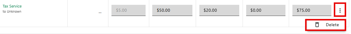 - Click on the three dots to the right of the total field. Click on the Delete box that pops up.