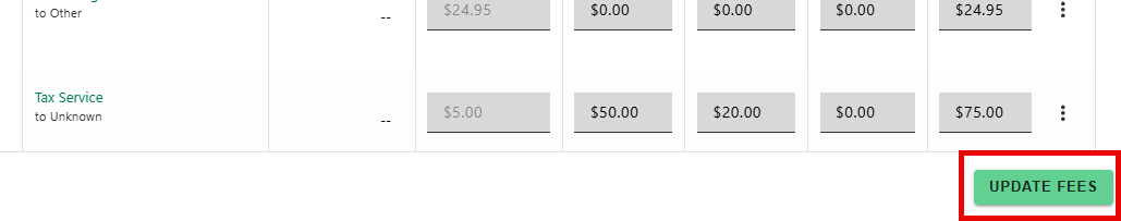 - Once done, click the Update Fees button to add the new fee and return to the main Fees screen.