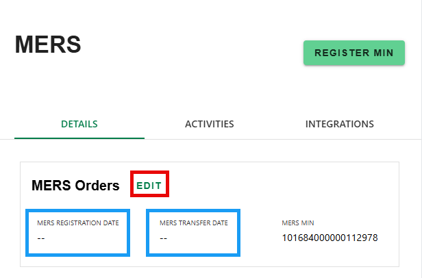 - Click 'EDIT' in the MERS Orders section of the MERS Progress Item detail screen to add tracking dates: