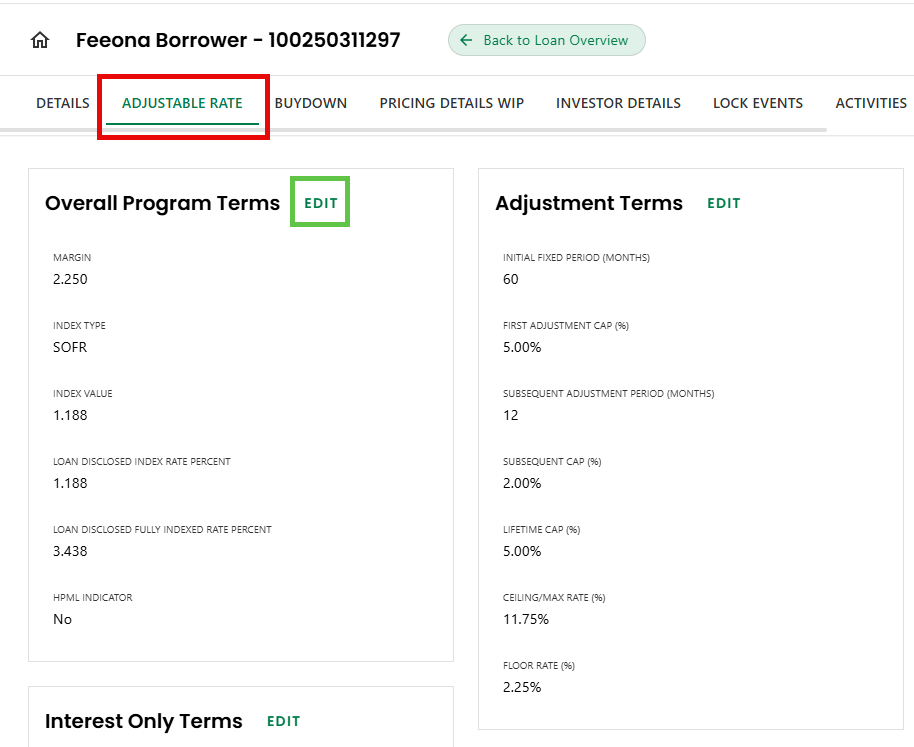 Step 3: View/Edit Adjustable Rate Terms