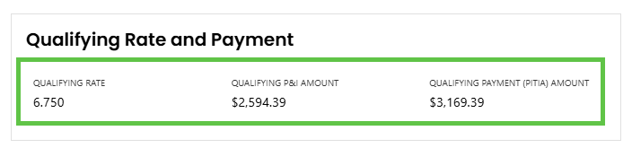 Step 4: View Qualifying Rate and Payment Section