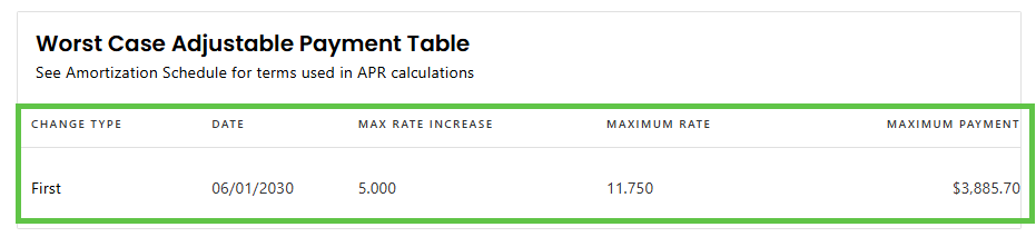 Step 5: View Worst Case Adjustable Payment Table