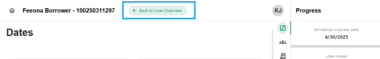 - Loan Overview is the landing page when logging into a loan. It also can be accessed from anywhere in the loan. Simply click the 'Back to Loan Overview' button on the top of the screen.