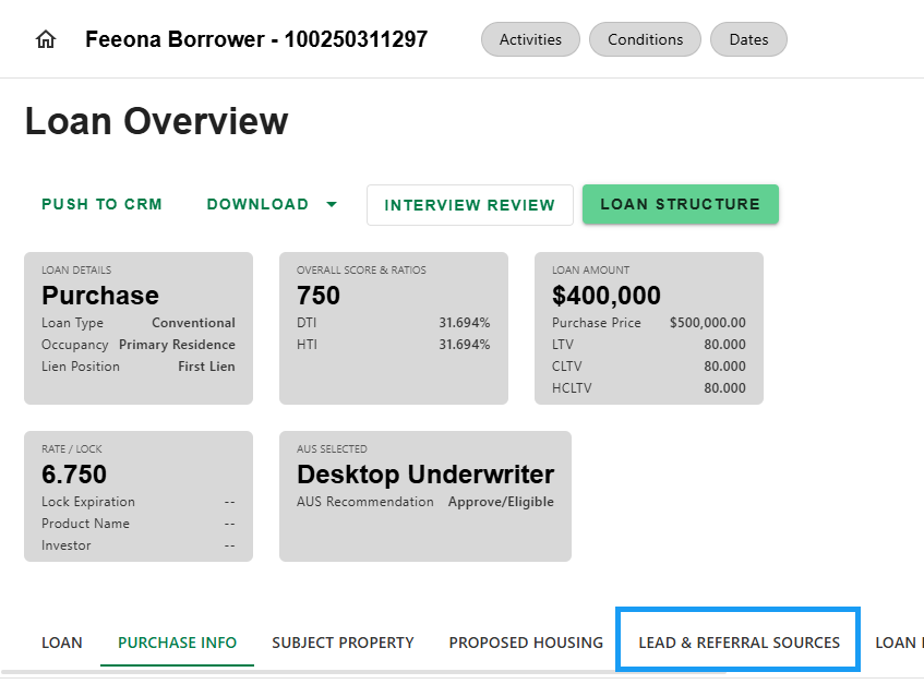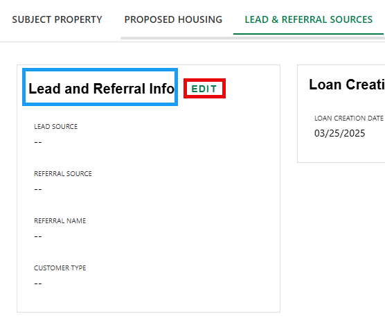 - Once on Loan Overview, select the 'Lead & Referral Sources' tab.