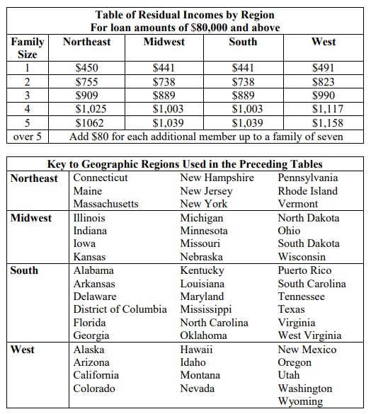 Charlie compares the calculated residual income against VA’s minimum required residual income tables, which factor in:Family size